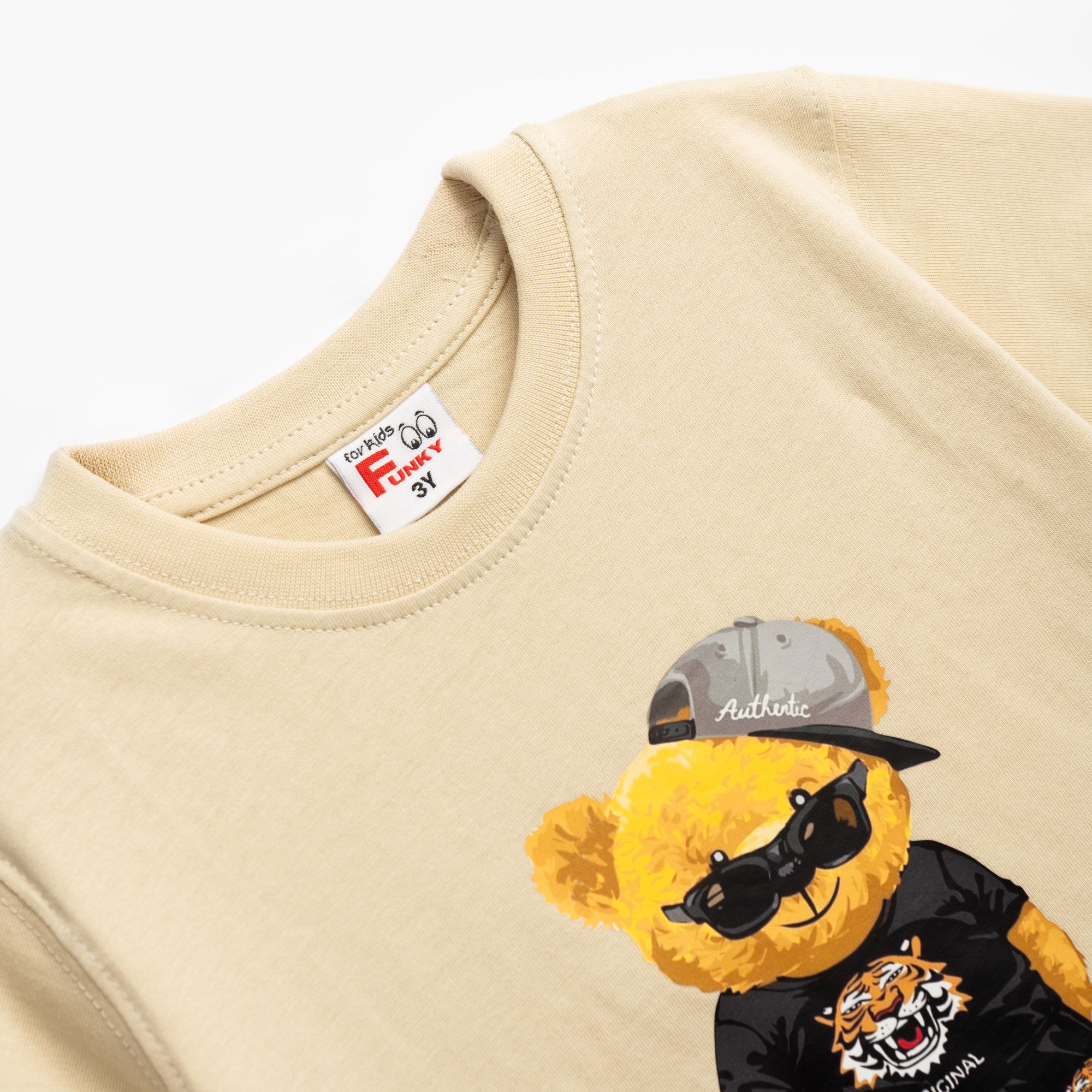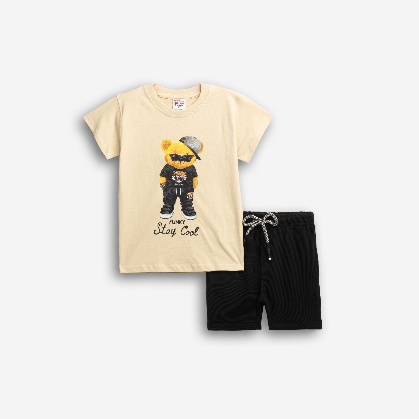 Σετ μπλούζα με τύπωμα (αρκουδάκι) και βερμούδα πάνω από το γόνατο σε χρώμα μπέζ/μαύρο για αγόρι 1-6 ετών