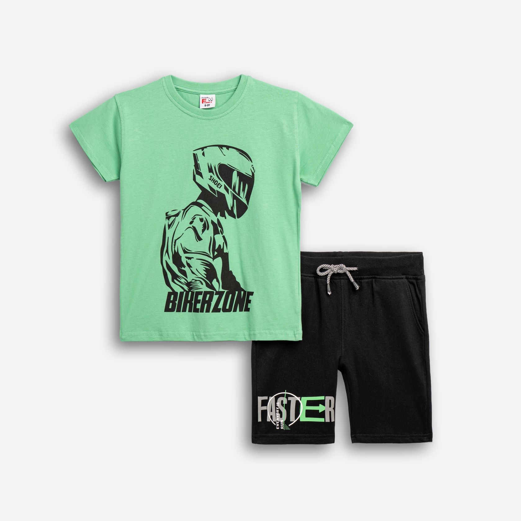 Σετ μακό κοντομάνικη μπλούζα με τύπωμα (bikerzone) και βερμούδα σε χρώμα πράσινο παπαγάλου/μαύρο για αγόρι 6-16 ετών