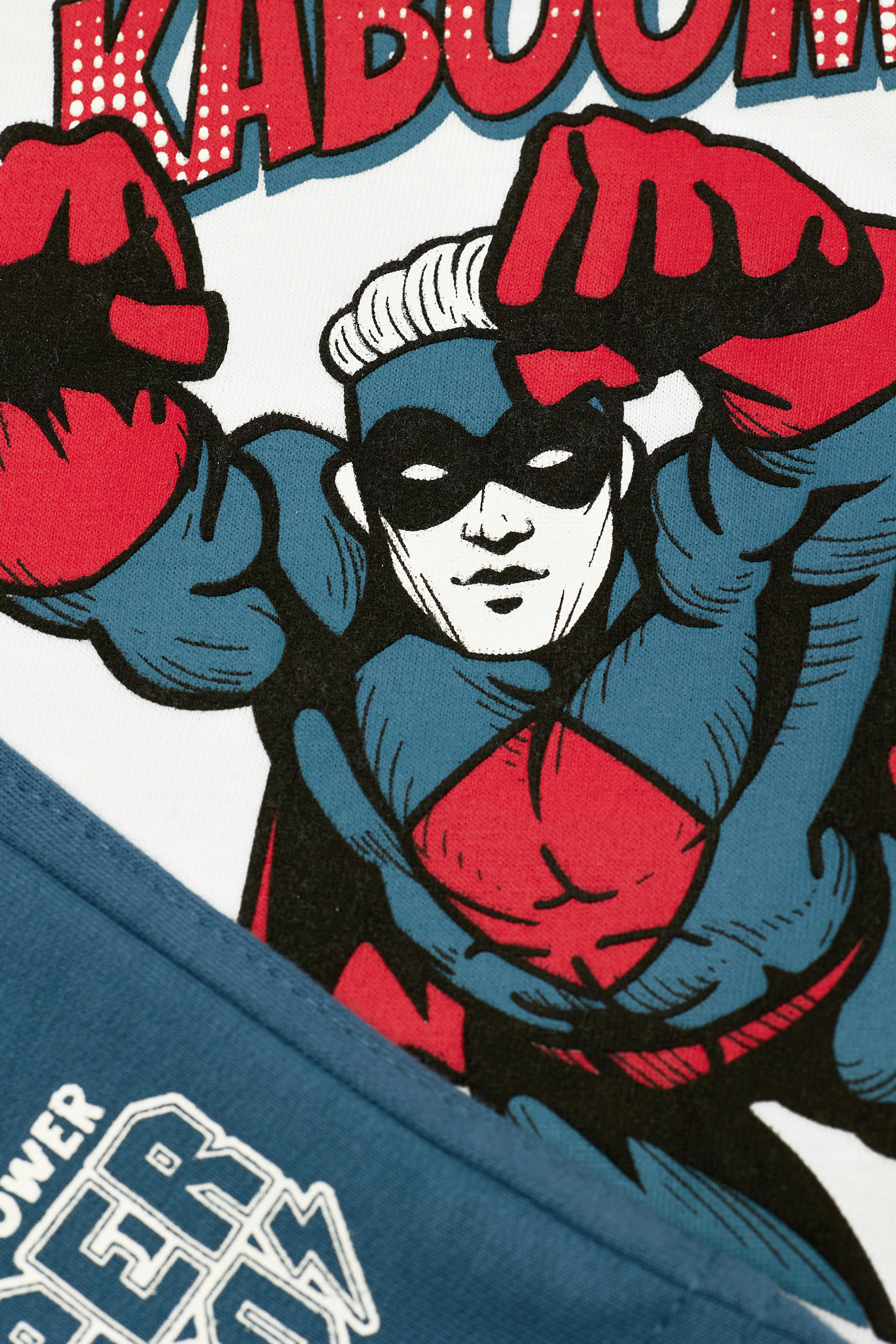 σετ μπλούζα με τύπωμα σούπερ ήρωες και μπλε σορτς με κορδόνι στη μέση