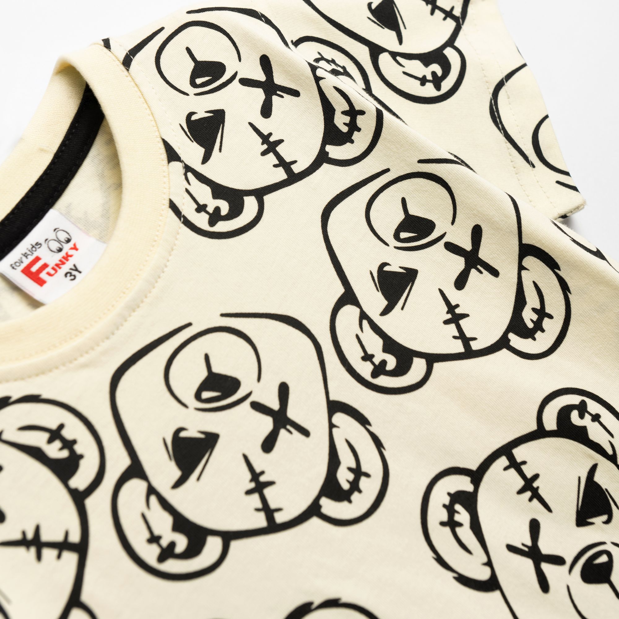 Σετ μπλούζα μακό με τύπωμα (αρκουδάκι) allover και βερμούδα πάνω από το γόνατο με τύπωμα σε χρώμα βανίλια/μαύρο για αγόρι 2-6 ετών