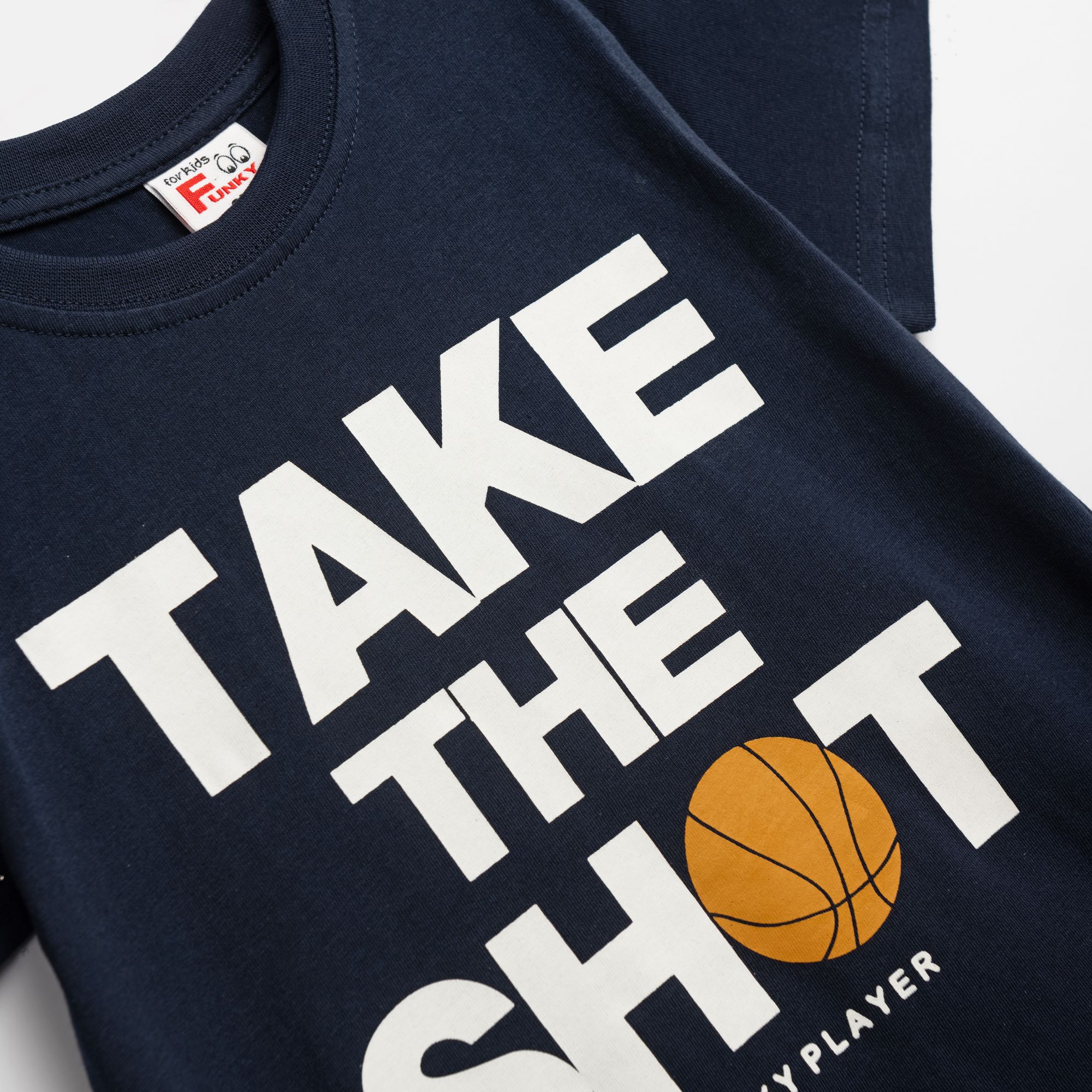 Σετ μπλούζα μακό με τύπωμα (take the shoot) και βερμούδα πάνω από το γόνατο με τύπωμα σε χρώμα μπλέ/τζίντζερ για αγόρι 2-6 ετών