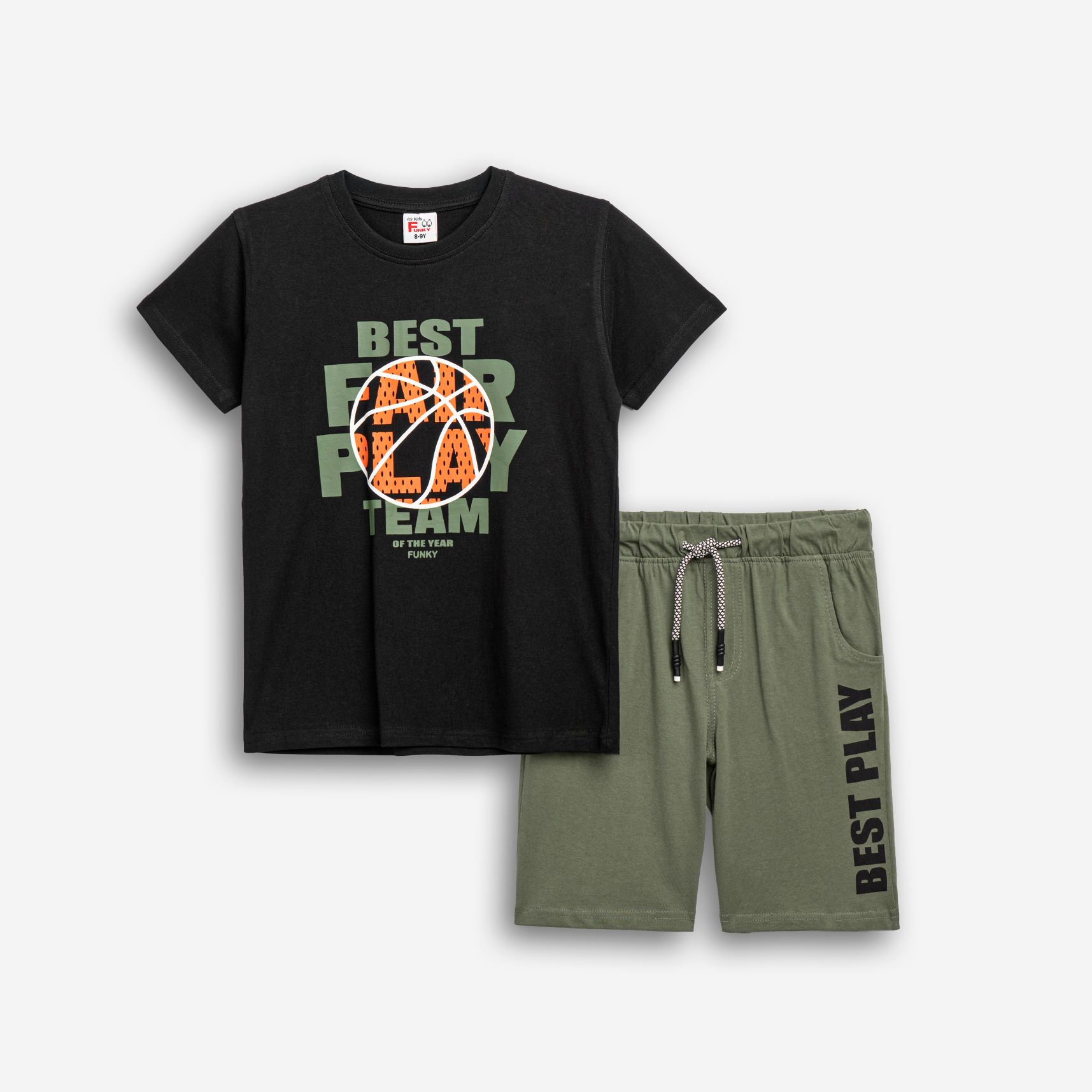 Σετ μακό κοντομάνικη μπλούζα με τύπωμα (best play) και βερμούδα με τύπωμα σε χρώμα μαύρο/χακί για αγόρι 6-12 ετών