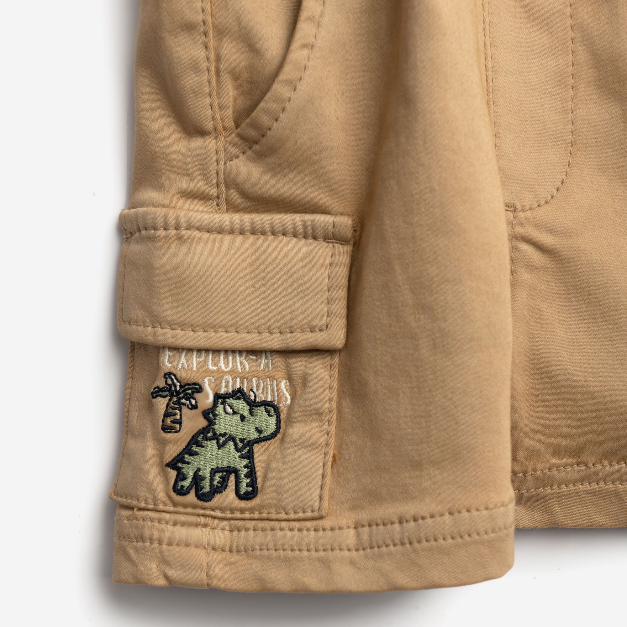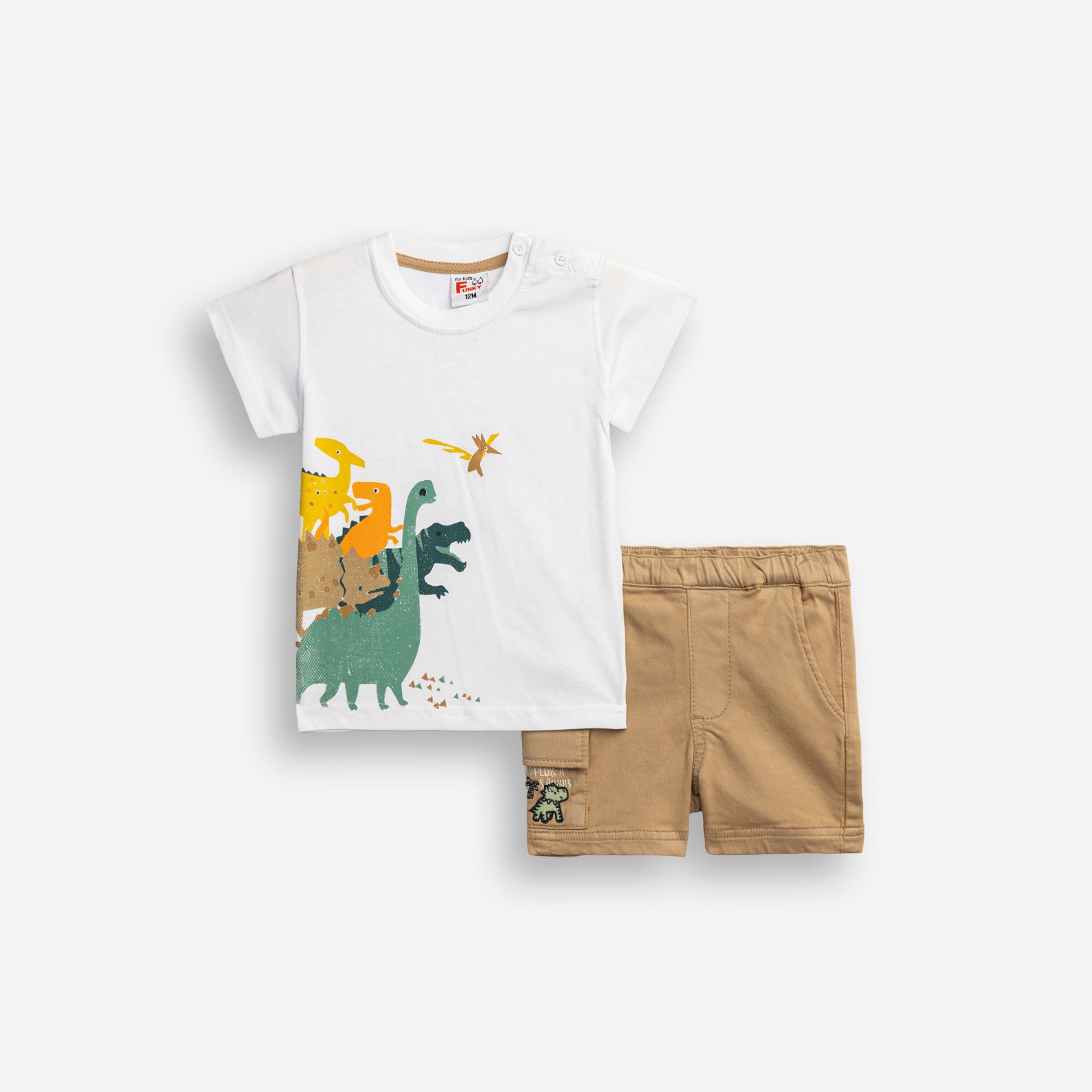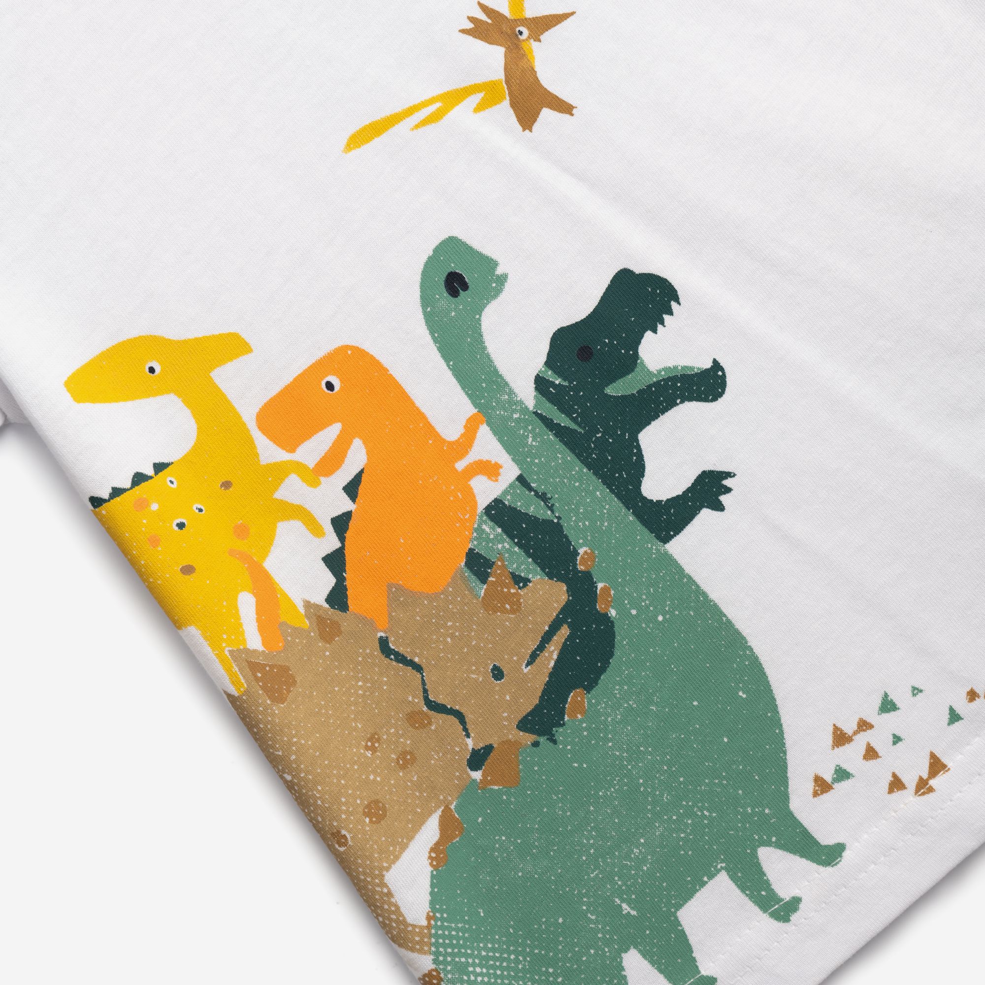 Σετ μπλούζα κοντομάνικη κάλτσα με τύπωμα (δεινόσαυροι) και βερμούδα λύκρα σε χρώμα λευκό/natural για αγόρι μηνών