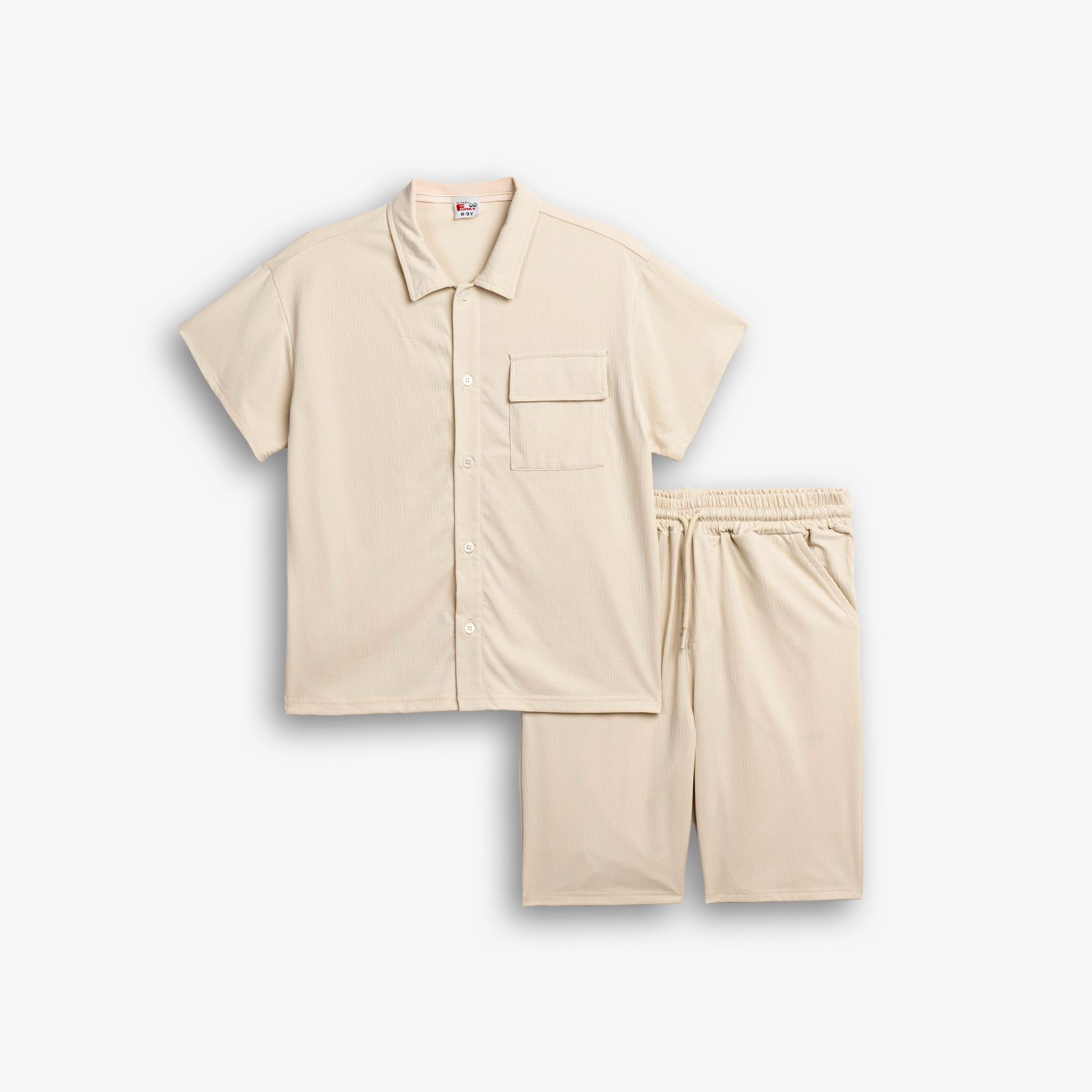 Σετ πουκάμισο κοντομάνικο με τσεπάκι και βερμούδα σε χρώμα κοχύλι/κοχύλι για αγόρι 6-16 ετών