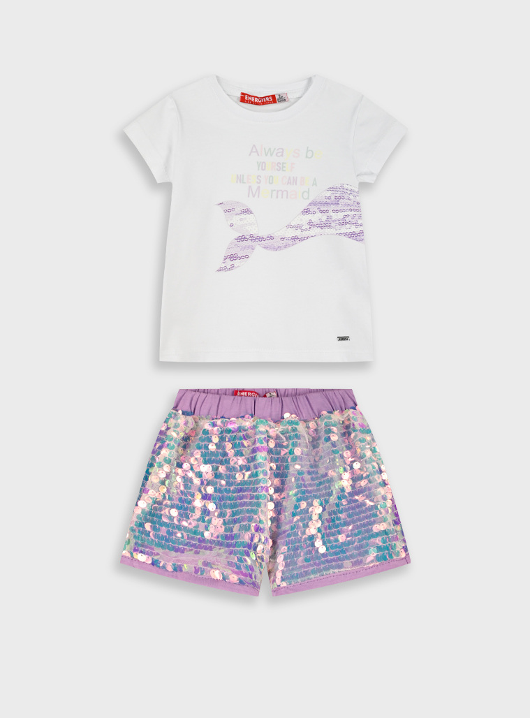 σετ μπλούζα με στάμπα ουρά γοργόνας και σορτς με παγέτες