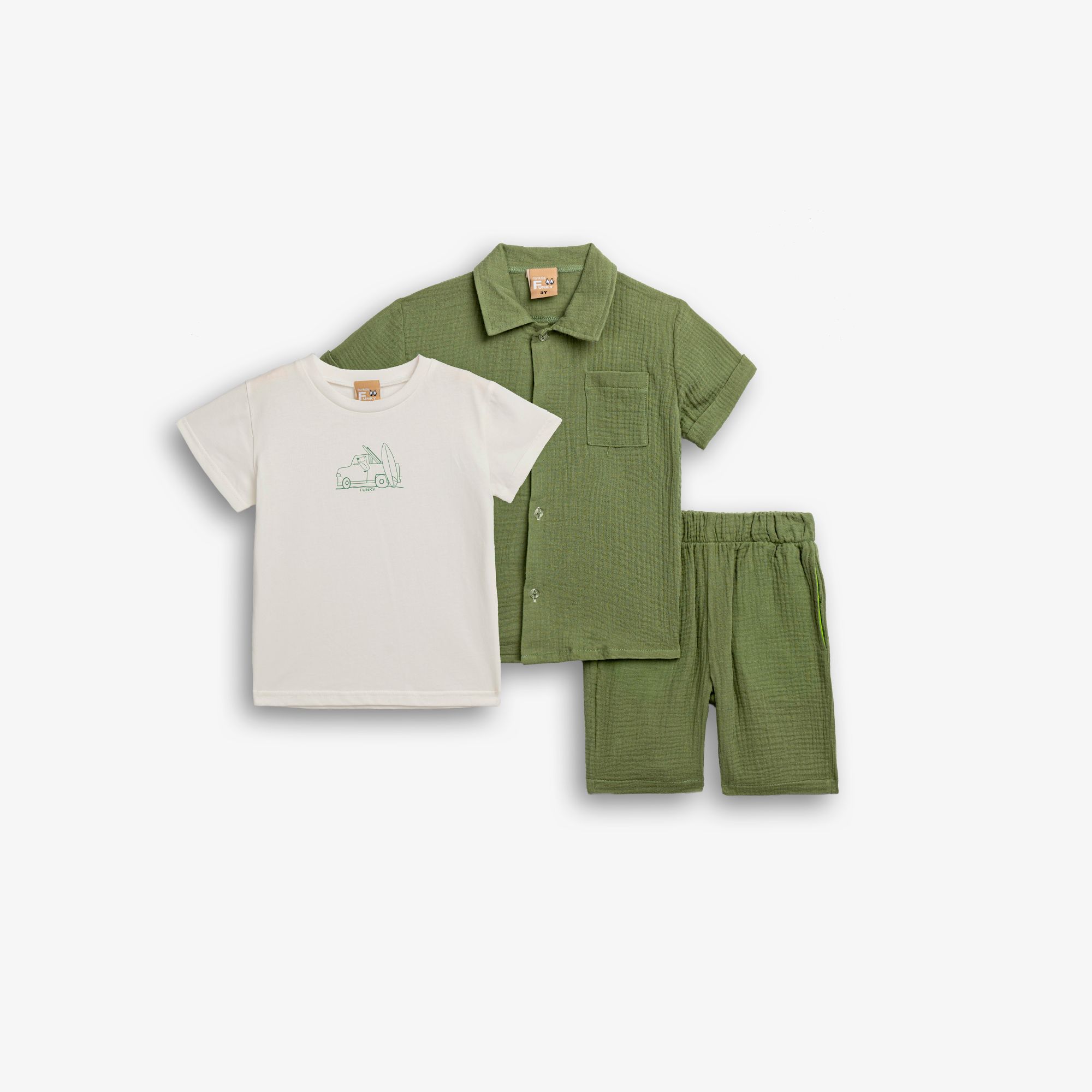Σετ 3 τεμάχια πουκάμισο κοντομάνικο και μπλούζα κοντομάνικη κάλτσα με τύπωμα και βερμούδα σε χρώμα βασιλικός/λευκό/βασιλικός για αγόρι 1-6 ετών