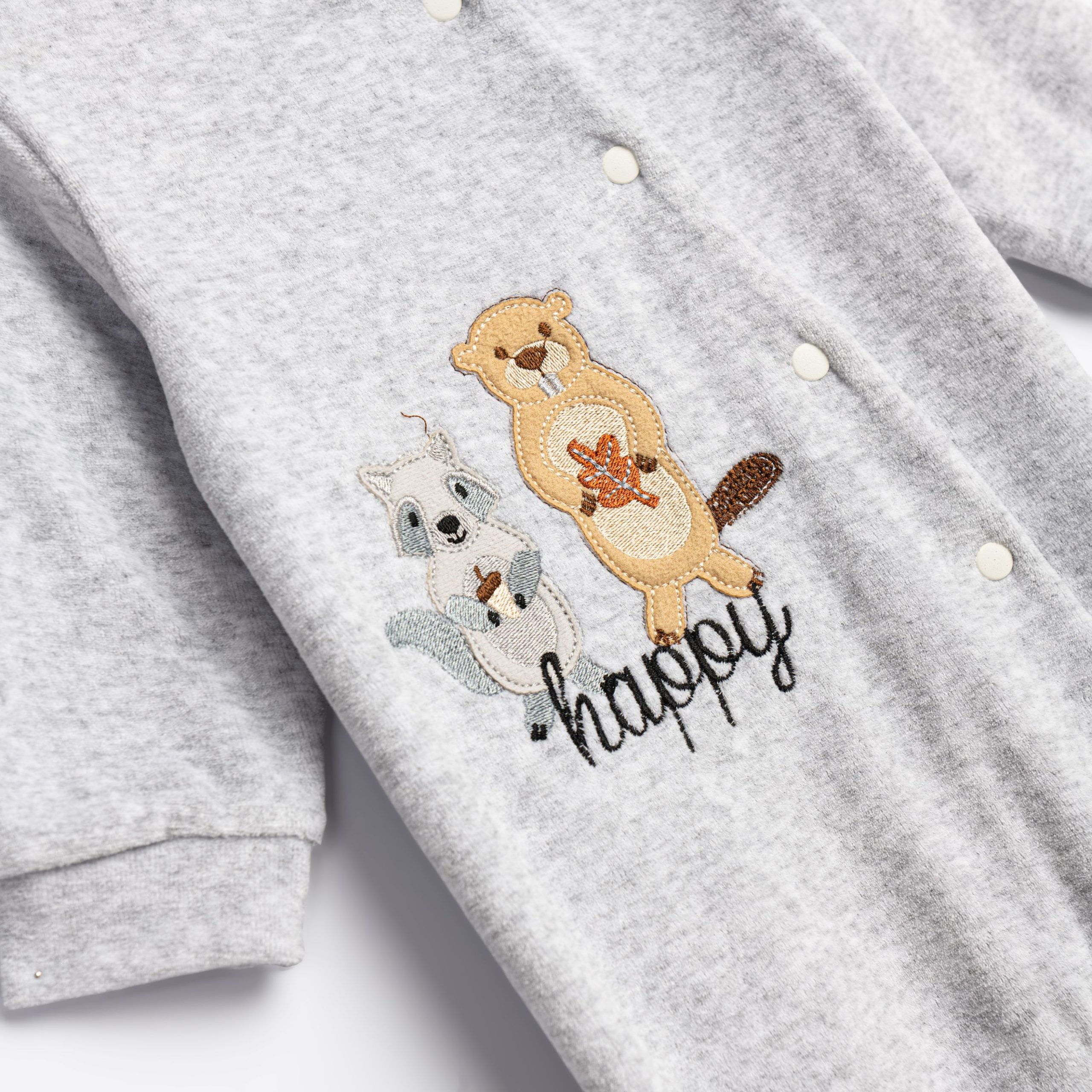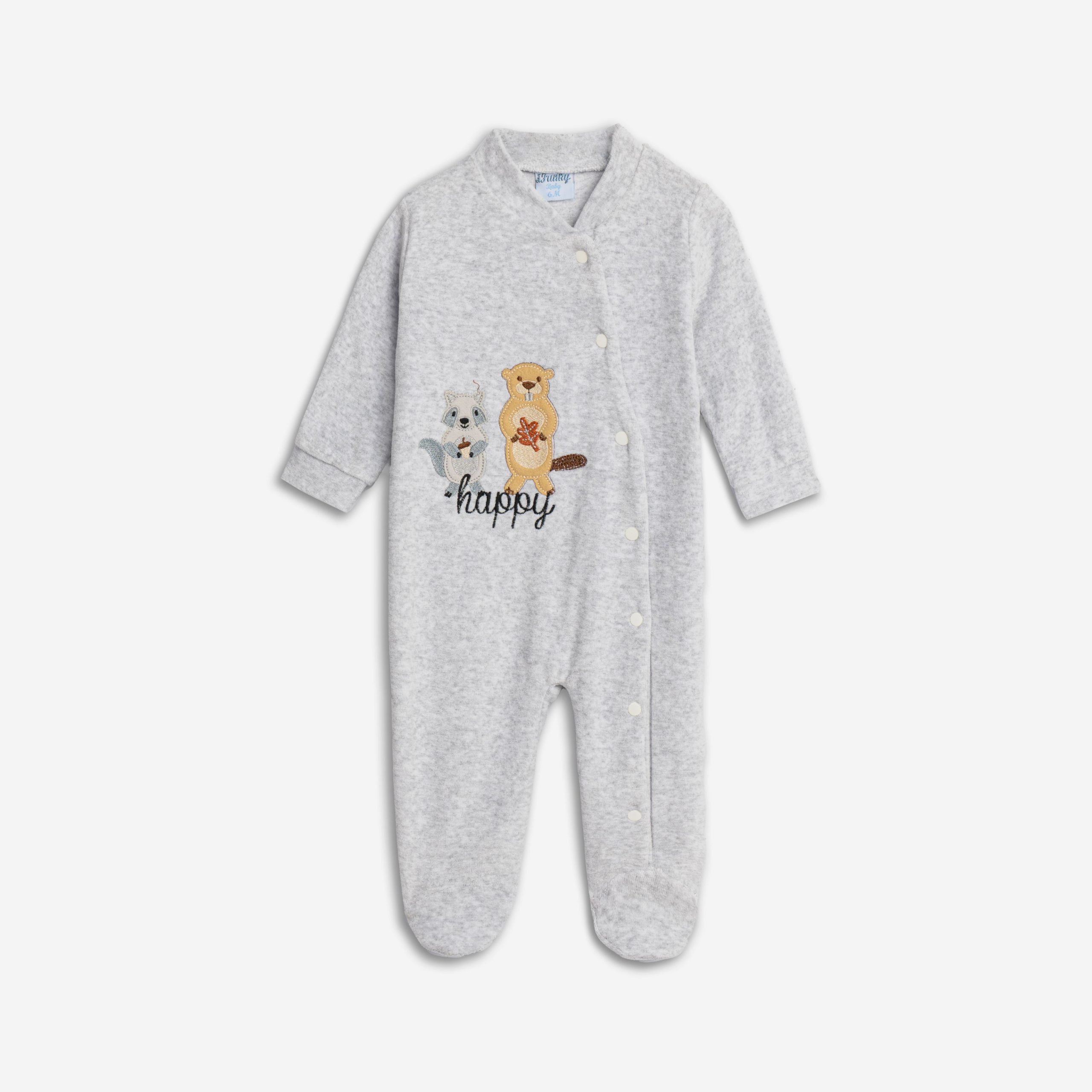 Φορμάκι μακρυμάνικο βελουτέ με τύπωμα σε χρώμα γκρι μελανζέ