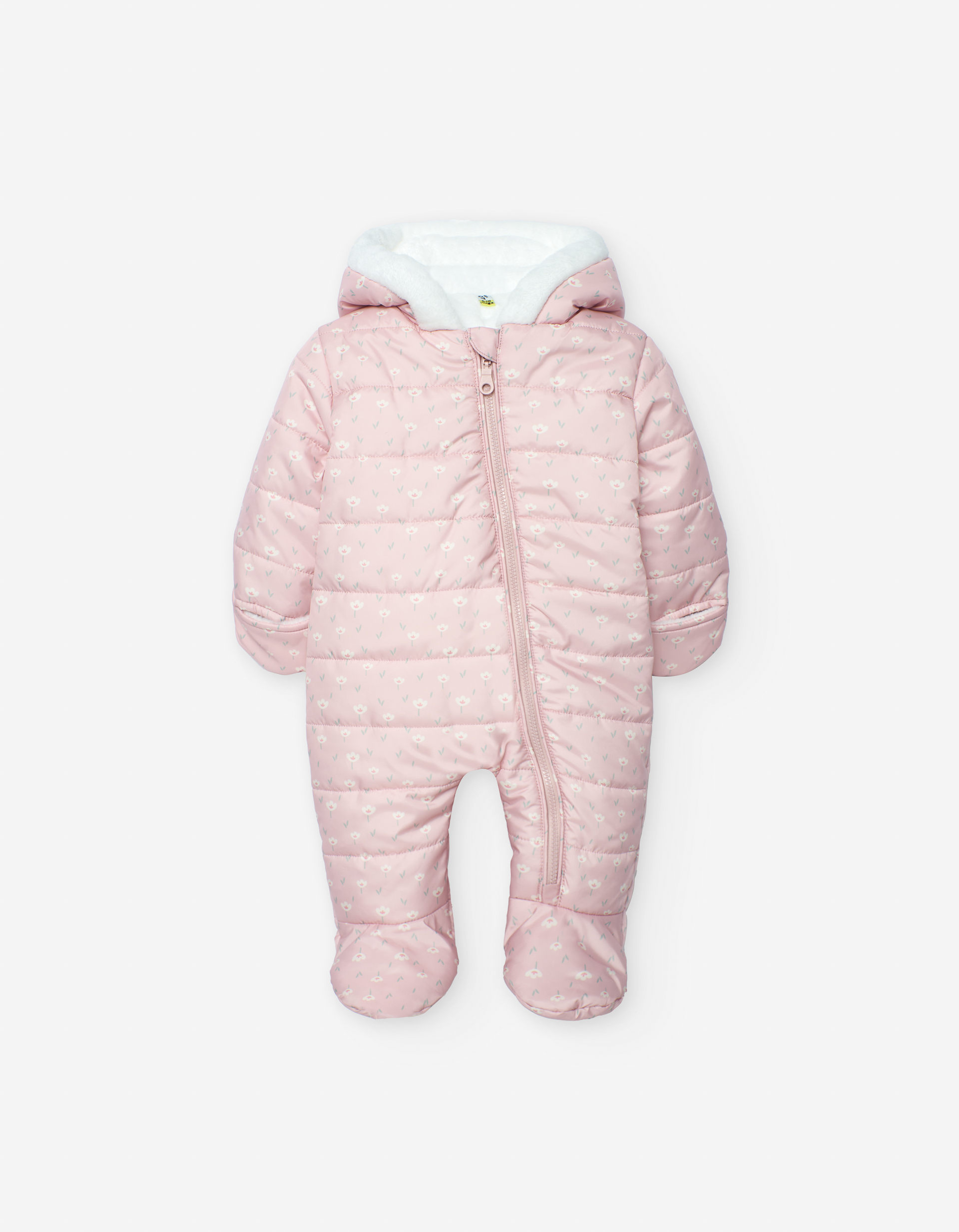 φόρμα εξόδου με εσωτερική επένδυση, αδιάβροχο με κουκούλα σε ροζ-σομόν απόχρωση ,3 -12 μηνων