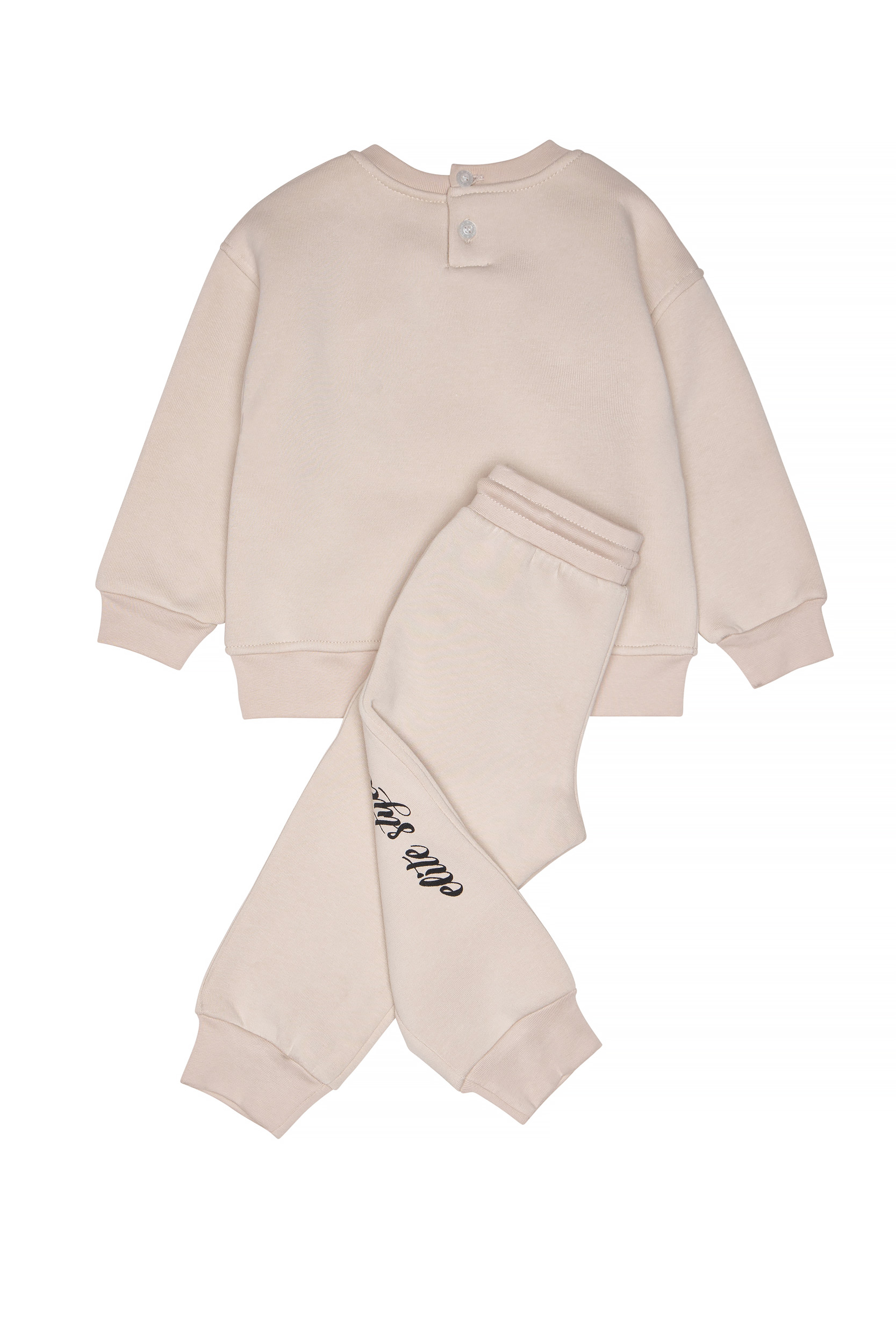 φόρμα κορίτσι σε χρώμα μπεζ με τύπωμα σκυλάκι και μπεζ πατελόνι φόρμας με κορδόνι στη μέση