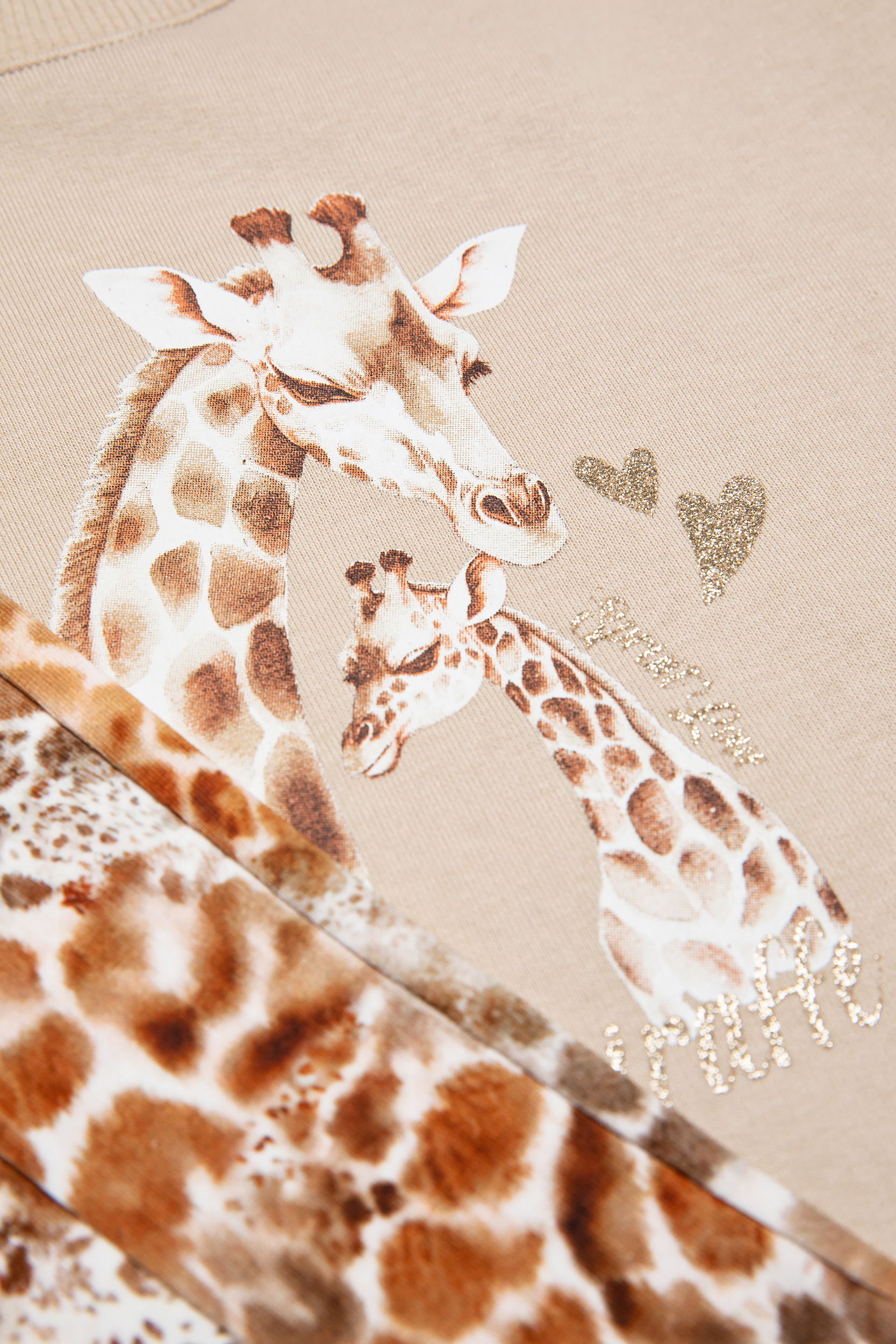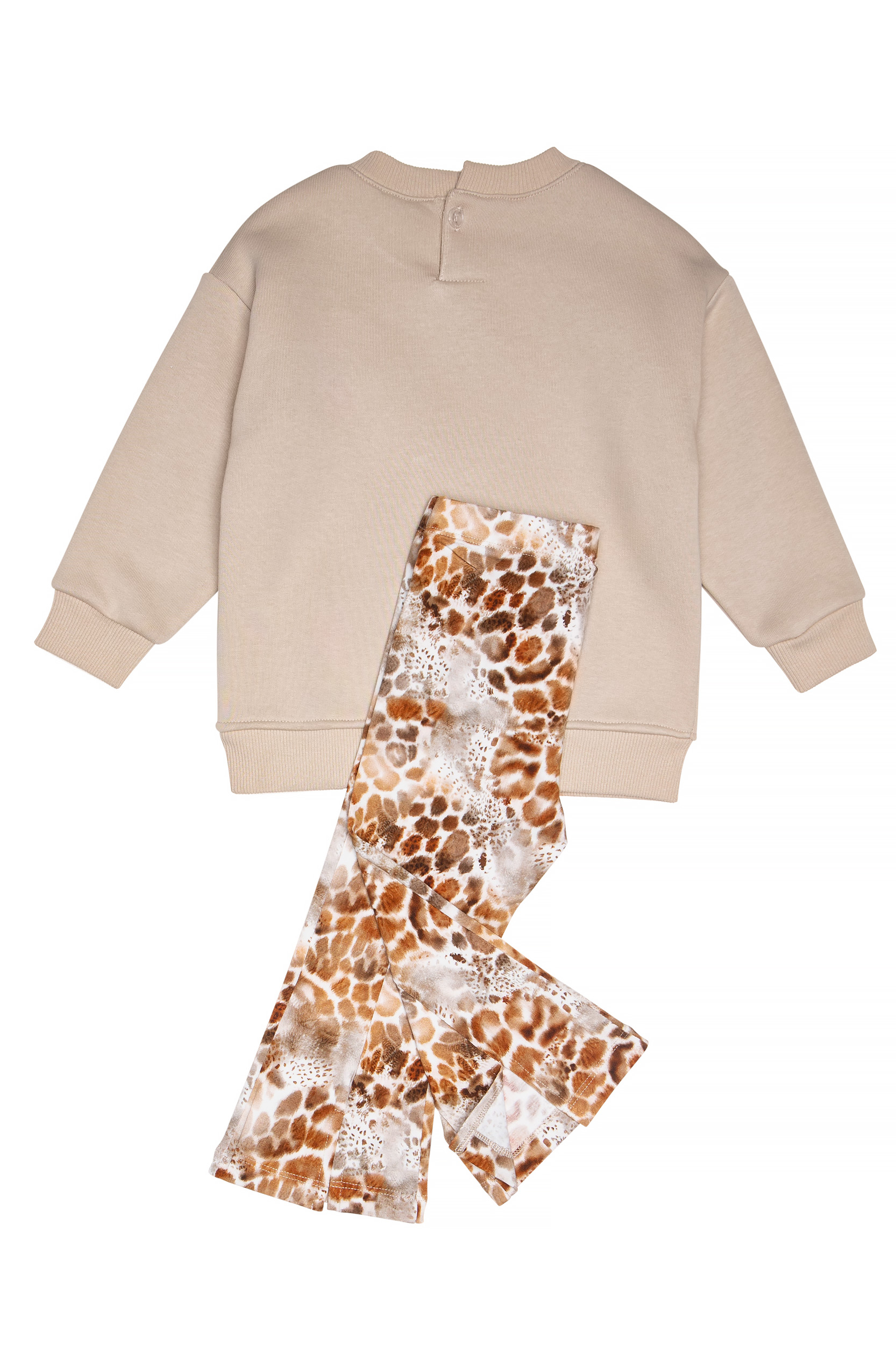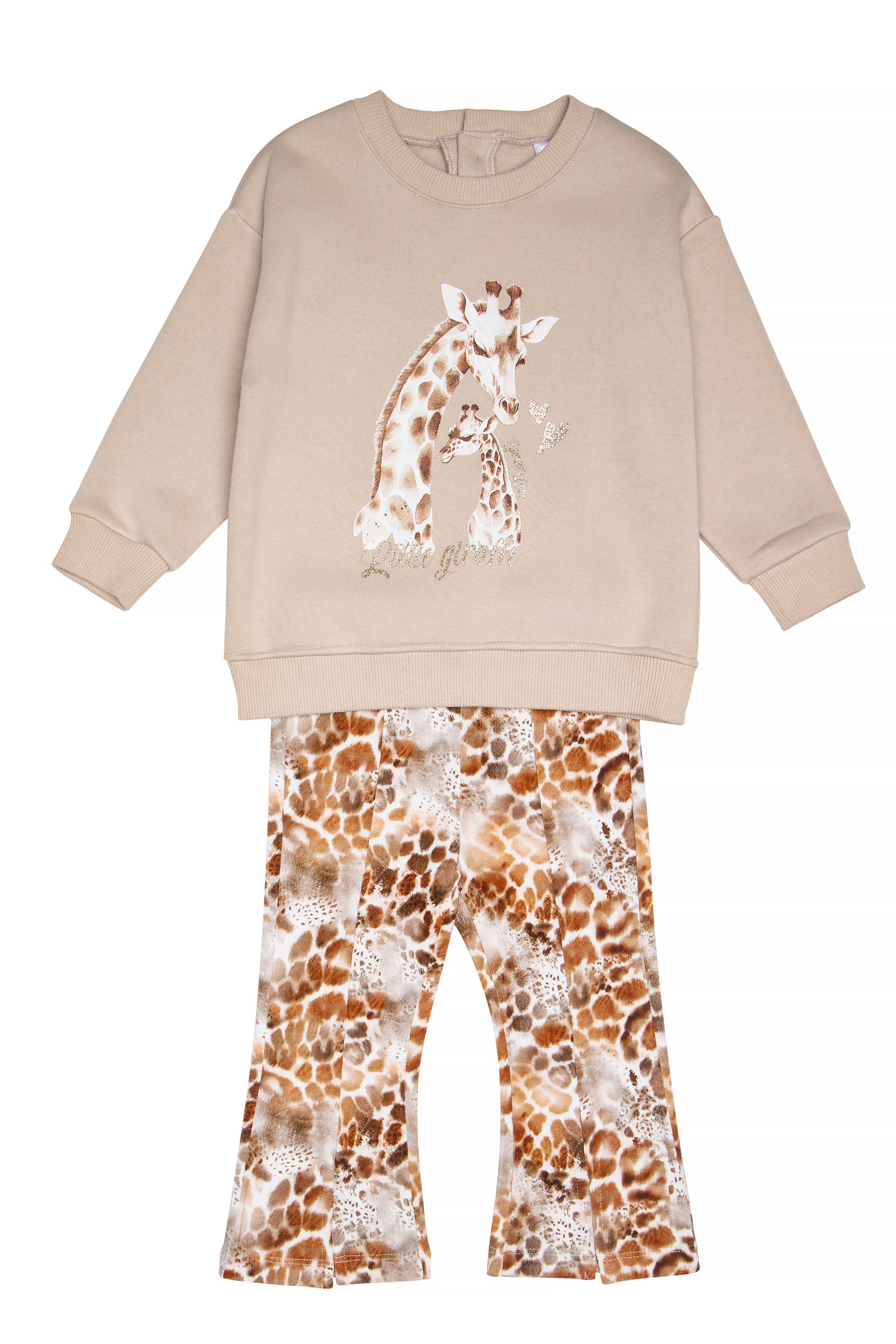 φόρμα κορίτσι σε χρώμα μπεζ με τύπωμα καμηλοπάρδαλη και κολάν καμπάνα στο ίδιο τύπωμα