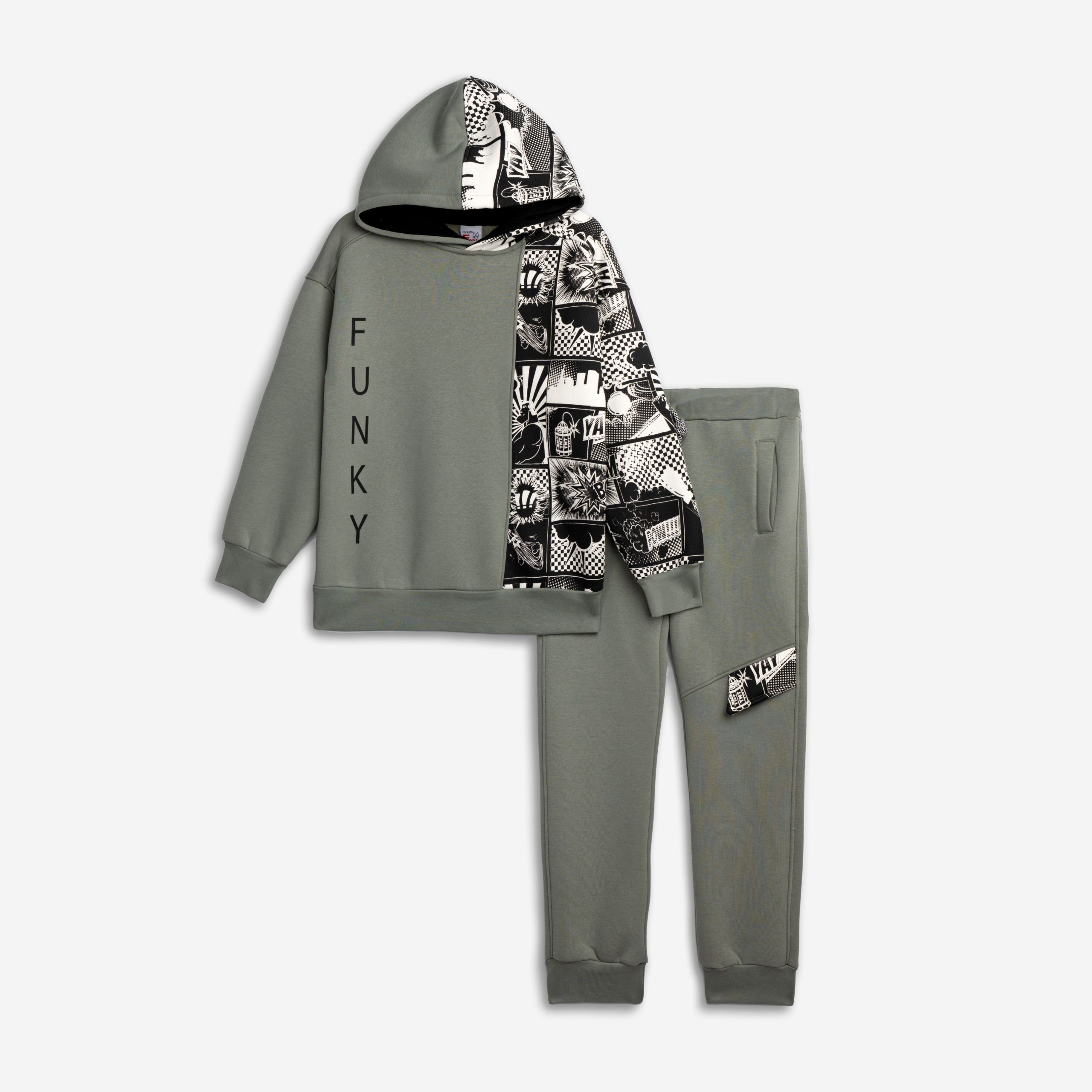 Φόρμα φούτερ με κουκούλα και τύπωμα στην μπλούζα και στο παντελόνι για αγόρι 6-16 χρονών σε χρώμα smoke/smoke