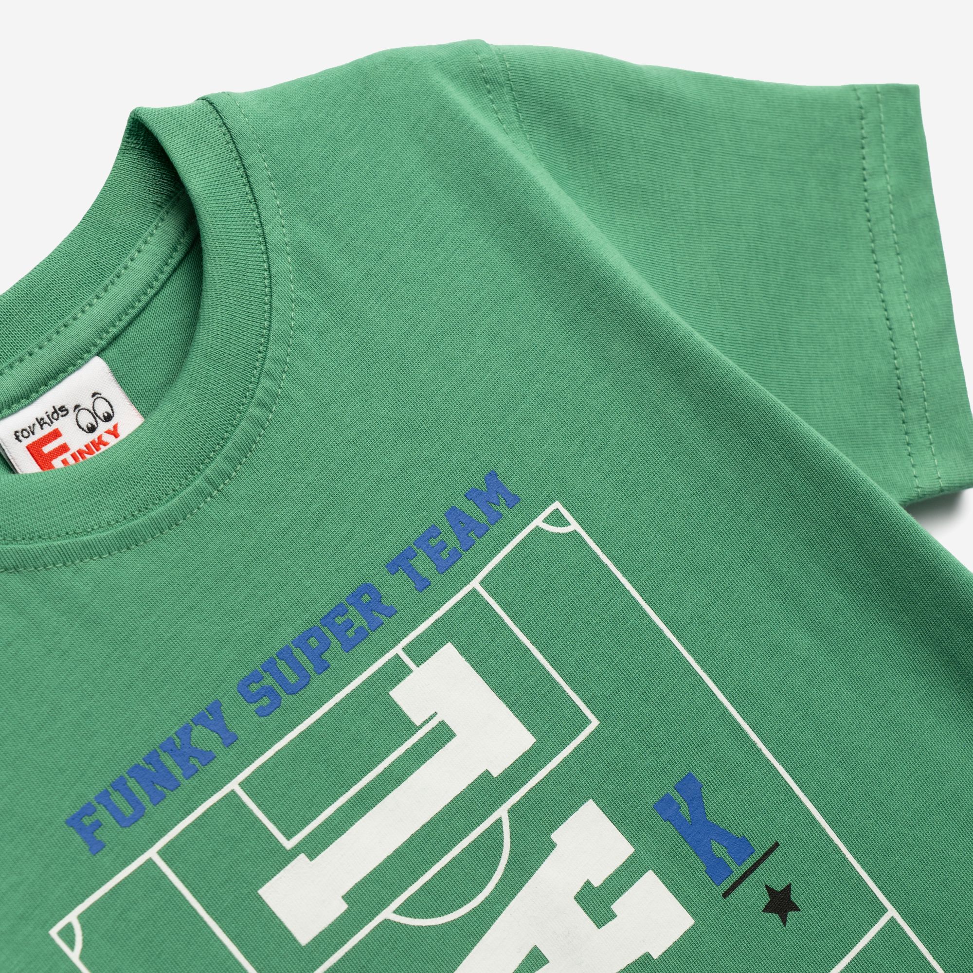 Σετ μπλούζα μακό με τύπωμα (goal) και βερμούδα πάνω από το γόνατο σε χρώμα leprechaun/ρουά για αγόρι 2-6 ετών